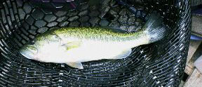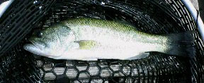 3ポンドラインでスリリングなやり取りをし、ボート際まで寄せると、目測よりはるかにデカイことが判明、横にピッタリと併走している45cmクラスが小さく見えるほど!それまで余裕でやり取りしていたのですが、その余裕も一気に無くなり、バスが浮いてきたところで、とっさにネットでランディングを試みました。すると、それまで素直に寄せられていたバスがネットを見た瞬間、急に底へ向かって突っ込み、ランディングをミス!そのままバスがボートの下に潜りこんだ瞬間、痛恨のフックオフ…残念。この騒ぎで、周りのバスが全て散ってしまい、夕方のワンチャンスは終わりました…。これで、この日の修行を終了。帰りの荒行を約1時間で済ませ帰路に付きました。