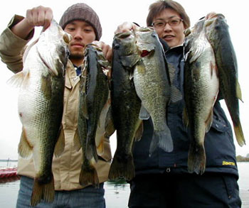 本日のゲスト大辻氏は豊川からお越しなのですが、野池で私のオリスペ“アユカラー”が効くとの事でした。くろますさんも“アブラ”でこのカラーで釣ってるし、刈谷の野池や三好の野池でもこのカラーがイイ!! と購入された方から48cmなどの写真を頂いたこともあります。“アユカラー”から“愛知南部カラー”などに改名しようかな?