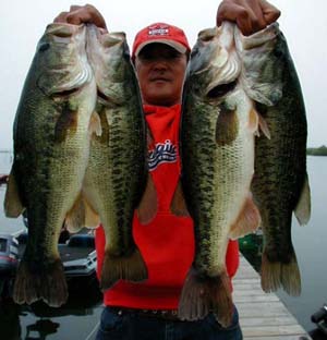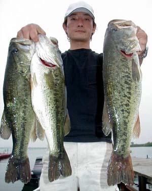 ZBCウルトラバイブスピードクローTX(ウォーターメロン・シードで9本)、ZBC6インチリザード(ウォーターメロン・シードで2本)、オリジナル完成間近のウッドベイト・TMブルーモツゴで2本、ペンシルで1本 |