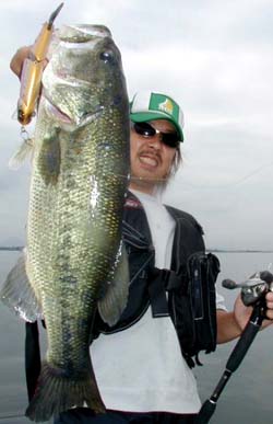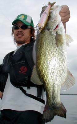 午前中は調子が良くなく私が45cm、40cmをオリジナルウッドベイトでキャッチしたり、バラシタリでしたが。午後からはやっとゲストに運気が・・・・・・。