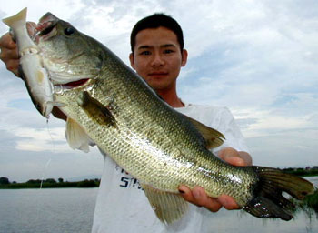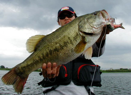 上の写真をパチリ後私の1投目に40UP。更に直ぐまたもや私に45cmがモンスタージャックJR.・ブルーシャッドに。