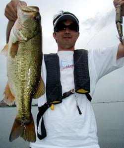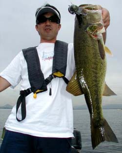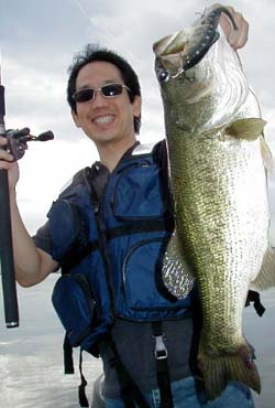 渡邉氏のバスをランディングしバスを手にしたまま