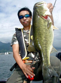 ゲストの和田氏は私の自作ワームのTXで幸先良く48cm。