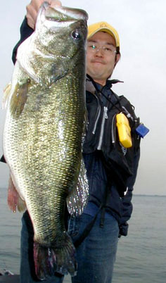 ド派手にジャンプしロクマルと直ぐに分かりました。ボートの上はパニック。再びジャンプされたり走られっ放しで、エレキも上げました。バスのスピードが落ちたと同時にバスの真上にエレキで直行し一気にランディングに成功。私も初めて見る大きさでした。