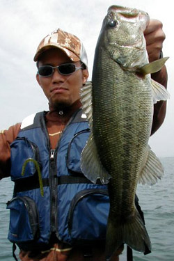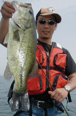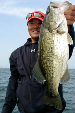 そして14時過ぎに沖の4mを攻めると釣れてくるコバスの活性がやたらと高いエリアを発見。風に流されながらラインを変え探っているとようやくナイスナサイズが溜まったポイントを発見。金城氏に50cm。