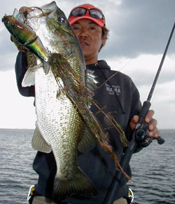 終了30分前“もう一本ゴジュウ来い!!”とエビモの塊にキャストし(全然とどいていない)リトリーブすると、大口を開けながら真下から本当に喰ってきた50cm。“ロクマル来い!! ”といっとけば良かったです。