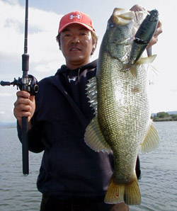 遠方からお越しのゲストさんは1時間半ほど遅れて到着しビッグベイトの釣りでは最も重要な時間をロスしてしまいました。それでもモンジャからスタート顔出しNGのゲストは40UPキャッチです。