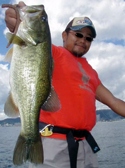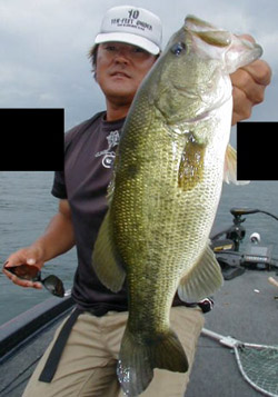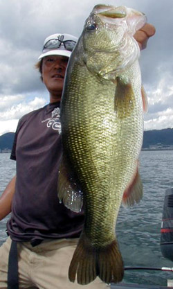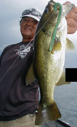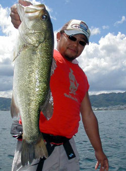 フッキングミスやワームをとられまくった田村氏ですが、45UPキャッチです。