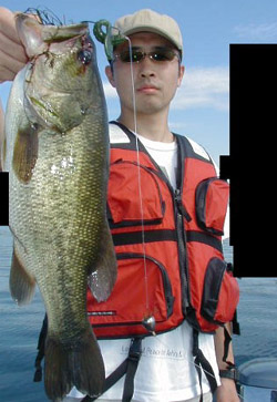 本日のゲストは10年前オカッパリで琵琶湖に通っていて、暇な時にバスのビデオを見たことをきっかけに10年ぶりにバスフィッシングを再開した栗本氏。本日使用したヘビーテキサスのタックルはコンバットスティック・ガンニングシャフト+ABUガンナー+ケイテックパドルと涙モノの一品。それでも頑張って初50UPなど釣ってくれました。ブランクはあっても釣れる人には釣れます。道具でバスは釣れません。