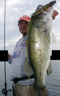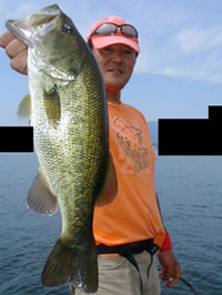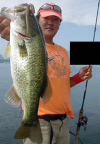 朝まで降っていたまとまった雨は上がり回復傾向で西の山の向こう側、京都方面の上空は快晴空。完全に晴れるまで何分もってくれるか?ゲストと共にビッグベイトでスタート。10投目位に匿名ゲストO氏はレンタル用のブルーシャッドで1cm足りない49cmをキャッチ。