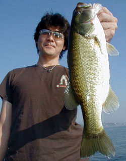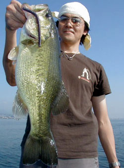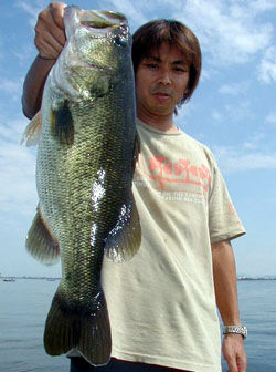 私も頑張ってはいたのですが14時頃までノーフィッシュ。理由はジュンバグか?ジュンバグに変えてからは少し眠たそうなお二人に追いつく勢いでラッシュ突入。前田氏が50UPをキャッチしたポイントを丁寧にさぐるとギルが3匹くらいおなかに入っていそうな“ジュゴン”をキャッチ。