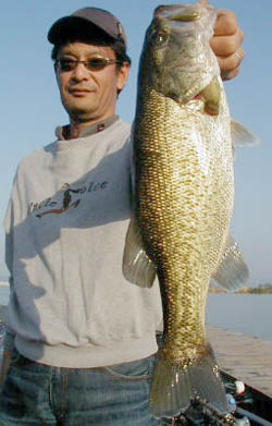 しばらくして55cmサイズのチェイスが…その後は反応なし。しかしキャストを繰り返し待望のバイト…55クラスでした。嬉しさのあまり少し慌ててしまいました。バスまで1m、ランディング寸前にジャンプバレ、10分位悔しさのあまりボーとしてしまいました。
