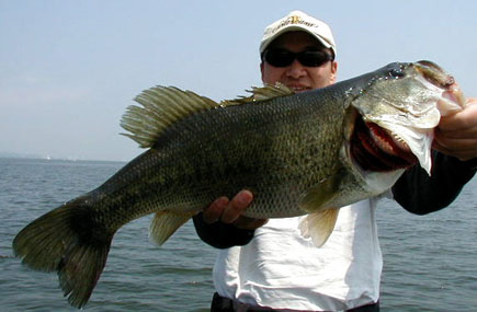 北山田、プリンスなどウロウロしましたが、やはりデカバスの予感がプンプンあのエリアへ。やっといい感じの風を感じた矢先に武藤氏がタメてタメてフッキング。そのロッドの曲がりからデカブツと直ぐに分かりました。ド派手に大口開けて2回ジャンプしましたが見事ロクマルキャッチしました。