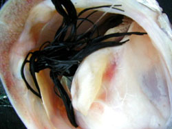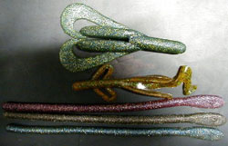 写真のオリジナルプロトのでかワーム(ホグタイプの方:ブラッシュホグオリジナルサイズと比べてもかなりでかいです。10inのロングワームはフッキングしませんでした)を本日からテストし56.5cmが喰ってくれました。