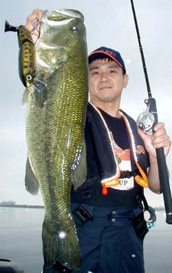 竹下氏のファーストバスは54cmルアーはティンバーフラッシュ ノイジー ダックスでした。このルアーでその後50、43cm追加。その後に私のモンジャや竹下氏にも計3回出ましたが、ミスが連発!! 移動して再びビックベイトで探り、3バイト1フィッシュの竹下氏。