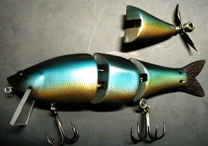 下の写真のようにフィンテールとプロップテールの取替えが可能です。発売時はセットで発売を予定しています。フィンテールはアフタースポーンやクリアーウォーターでのナチュラルなスイミングで誘い、プロップテールはサウンド重視、アピール重視で秋口、アフタースポーン中の風&雨、ステイン〜マッディー向きです。