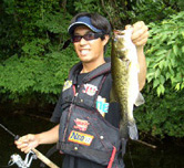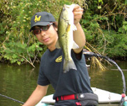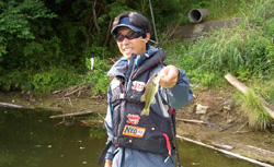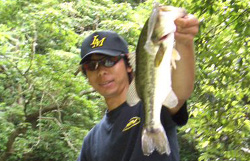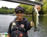 長瀬君とはジュニア・トーナメントに出場しているころからの知り合い。今年のJB2河口湖第1戦で優勝、去年のイースタン戦でも勝っているスイムベイトの使い手です。今回は長瀬君のホームレイクでもある亀山ダムを案内してもらい、新作の自作エコワームのテストも兼ねて釣行しました。
