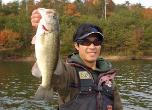 この日、同船していただいた鈴木さんにも私の使っていたノリーズ・メタルワサビーを使ってもらうと、ルアーを変えたとたん連続でバスをキャッチ。鈴木さんは普段、宇治川でオカッパリをされているようで、10mラインのメタルジグの釣りにかなり感動されていました。