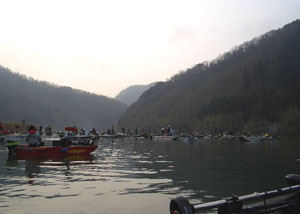 傷心と反省のイースタンリーグ河口湖戦から10日後、すでに私は岡山県・旭川ダムの湖上のヒトになっていました。