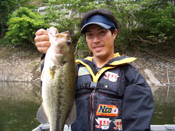 日曜の銀山湖戦では8位獲得でテンションも上々、そして旭川ダム戦本番前の前日プラではフックを折ったテキサスリグで各スポットをチェック。前週後半(銀山湖の試合に行っている間)に急激に水位が減ったことで、前週反応が一番良かった中流域・江与味橋付近エリアの中から一番減水の影響を受けにくいと思われる急な岩盤エリアで数回のグッドサイズらしきバイトを確認。さらに赤土エリアの水中に伸びる張り出しの下流側の急深エリアに竹のレイダウンが絡む場所でかなりの重みのあるバイトを確認することができました。