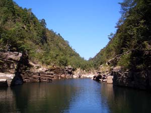 次の日からはまず小瀬川最上流部をチェック。壁のような岩盤を進んで行くと、渓谷のようなバックウォーターが現れます。