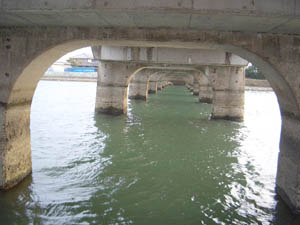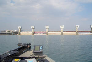 川のフィールドということでいつもとは違う景色が盛り沢山、低い橋脚(釣りをしていると頭ぶつけます、危険!)や河口堰による1日1m以上の水位の変化と流れの発生などいつもと勝手が違ってすごく新鮮!? これが後々の試合でワナになることに・・・。