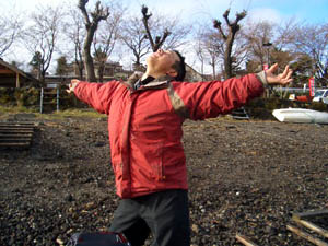 そして大会当日の朝。いつも河口湖のときに色々お世話になっているコバちゃんが光合成!?してます(笑)わざわざ朝早くに激励に駆けつけてくれました、ありがとう!