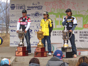 各タイトルを獲得した3選手(左から小森プロ、馬渕プロ、相羽プロ)。いつかはあそこに立てるように頑張らないと!