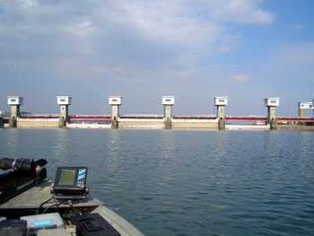 ボートを出した時には沈んでいたロック帯が夕方、戻って来たときには水上に!日によっては1m近くの水位の上下動があり、とっても危険!要・注意です。