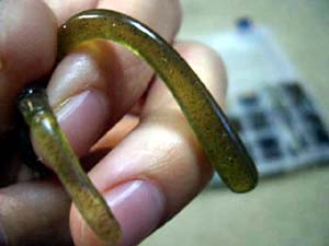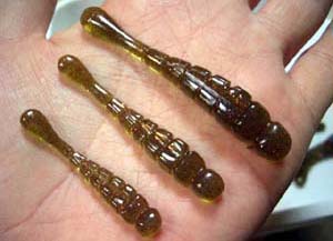 黒鱒釣競技生活のフィッシングレポートにほぼ毎回登場し、昨年一番バスを釣った完全オリジナルのソフトベイトです。これの誕生は2年前、2004年のプロシリーズ開幕前に遡ります。