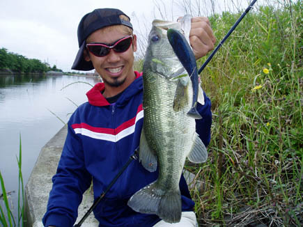 これだけ水路や川があり野池もありゃ〜フレッシュなバスが釣れるだろっ!って事でまずは10FTUの最強スイムベイトであるH.Bをキャスト。今回は水深があんまないフィールドだったんでH.Bデッドスロールでトライしてみやした。引き波をたてながらゆっくりゆっくり・・・、ドゴンッと出た一発目は43ぐらいの元気なバス。その後は48と50までをH.Bデッドスロールで叩きだした。ハイプレッシャーだとは聞いていたがハマった。やっぱりH.Bデッドスロールは凄かった。バスの喰い方が半端ないくらい水面が炸裂でした。皆さんもたまには初めてのフィールドへ地図持って行ってみると新鮮で面白いっすよ。ではでは。
