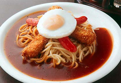 他の地方のヒトから見れば「なんじゃこりゃ〜」状態なんでしょうか?太めの麺にちょっと辛口のとろっとしたアンがスパゲティのまわりにかかっている、これこそがあんかけスパゲティです。そしてスパゲティの上にはいろいろな具が乗ることで値段が変わってきたりします。ちなみに名古屋のヒト全員が好んで食する料理ではありません。実に好き嫌いが分かれます。ちなみに黒鱒は好きなほうですね。時々お昼は会社の近くにある「楽々」っていうお店にちょくちょく出かけます。
