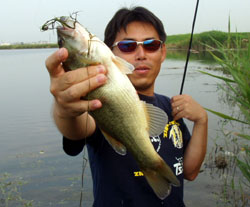アブラは近場なので4時半に到着。最初は見合い橋付近を手当たり次第に打つがタイさん(ギル)のみ。5時を過ぎたところで移動。水門をランガンしながら上流域へ。で、風や地形などから考えて“今回はここ!! ”と決め打ちして釣りを始めました。先行者が一人いたんですけど、どうやらランカーズ関係の人と判明(スイマセン、顔覚えます←今回貴重な40アップをキャッチ)。そのあとも仲間が続々と集結。この時点ではたいして釣れていないのに沢山集まっちゃいました。誰のフェロモンや〜!!