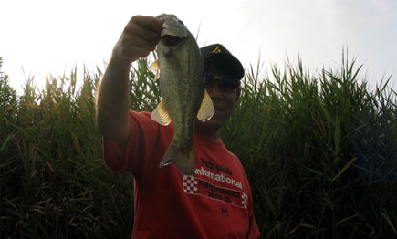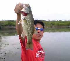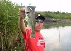 で、この日は最初から昨日の爆釣(?)ポイントへ。するとすでに先行者が。ヤバイな〜と思って近づいたんですけど、“黒鱒.comの刺客”“よっしぃ〜☆”でした。現在ランカーズ杯の暫定年間成績をTOPで爆走中。強者です。
