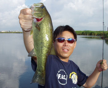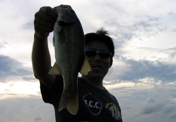 ここでは仲間の皆と合流。すでに一本ワッキーさんが小場所(?)で“シーバス”をゲット。うらやまし〜! でもすでに7時を超えてたんでバス釣りに変更。釣り開始です。