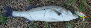 ワッキーさんが釣り上げたシーバス。うらやましい…。