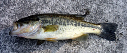 んで5分後、集中モードへ。最初はいままで良かったエリアを狙っていたんですけど、どーもよろしくない。「ちょっと付き場」が変わったかもと思い、温まりやすい場所と水深の変化を探って「たぶんこのあたりかな」と思ったところをリミットメイカーのあるワームをちょこっとテコ入れしたものをダウンショットで念入りに狙いました。でも×。困ったなと思ったんですけど、よく考えるともう一カ所同じような場所があるのを発見。そしてそのあたりを狙って10分くらい粘ったかな?って時にバイト。最初はラッキー!! と軽く考えてたんですけど、そんな軽く喜んでる場合じゃなくて、結構引くんですよ!おっいつも(この池でのくろますのアベレージは25〜30cm)よりもデカイ! って気付いた時はけっこう慎重になってて、何度もジャンプされたんですけど上あごガッチリだったので、細いライン(4lb)ということだけ意識してドラグをきかせてゆっくり引き寄せてランディング。けっこう走り回ったりしてランディングまでが大変でしたけど、釣れたのは35cmのグッドサイズ!! 来てよかったぁ〜♪