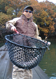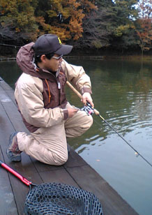 実はこの管理釣り場はもともとフツーの野池だったので、以前からバスも生息してるんです。季節があえば50アップも釣れているとのこと。しかし、この時期に釣ってりまうとは…hiroさん、あなたは三河湖山岳隊といい、やっぱりスゴイです。