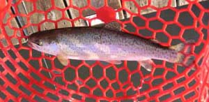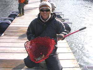でも冷え込んだせいか、なかなか釣れません。それでも放流量が多い釣り場だけに30分くらいしたころでくろますがヒット。サイズは30センチにも届かないちいさなレインボークンでしたが、まんぞくまんぞく。ルアーはやっぱりFORESTさんのマーシャルです。ホントいいっすよ、これ。