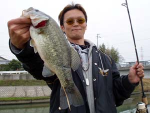 連絡をもらってすぐにポイントへ直行。ビクにキープしていたよっしぃ〜☆さんを発見。魚を見せてもらい検寸すると35.5cm。意外とこの時期にしては小さいので、あれ?と思いましたが釣るだけでもスゴイことですので、よっしぃ〜☆さんホント偉いっ。それも体高があってヘラみたいなバスでした。ちなみによっしぃ〜☆さんは今年アブラですでに3本ゲットしている強者。昨年も総合3位でした。