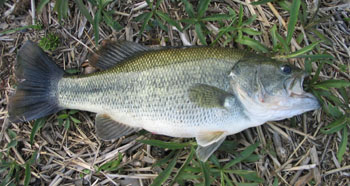 そうです!いなじさん、また釣っちゃったんです。この人はホント“キングオブアブラ”ですわ。写真を撮りにUターンしていなじさんのもとへ。産卵を一度したあとみたいなバスでしたが、45cmのグッドサイズ。これを見たら再び闘志の火がつき、帰ることができなくなりました。