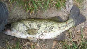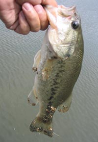 スピナベで釣れたバス。ぶっこ抜きだったので砂だらけ。ゴメンよ。