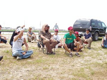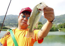 トーナメント当日は絵に描いたような夏空でした(本日梅雨明け! )。気温は30℃以上(暑い!! )、風は弱風と微風の繰り返し(無風よりはマシですが…)。朝から選手にとってもバスにとっても(?)厳し〜いコンディションの中、朝6時にスタート。参加選手は思い思いのポイントへ移動していきました。