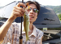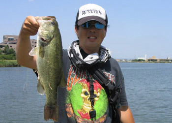 そしてもう一つのドラマを起こしたのは、前回準優勝のよっし〜☆さんです。見合い橋西付近のゴロタでワッキーワームのワッキーリグを使い44cmをキャッチ!残念ながらhiroさんの48cmを超えることはできませんでしたが、丸まる太ったグッドコンディションのバスでした。湖岸道路が一部工事中ため、クルマが入れないところを歩いて釣っていくことにより、プレッシャーの低いバスに狙いを定めたことがこの結果を出したんだと思います。