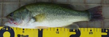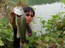 すると今大会から初参加のベン君が見合い橋周辺で見事キャッチ!サイズは30cmでフリックシェイク3.8インチのネコリグとのこと(シンカーは膨らんだほうにインサート)。わずかな風と本湖で最も水通しの良いポイントというファクターが、この結果をたたき出したようです。おめでとうございます!