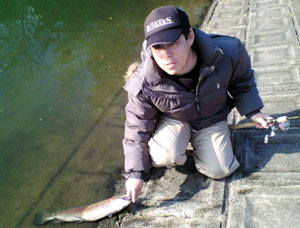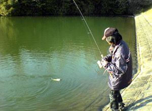 で、大晦日は一人でのんびり管釣りでもするかと下ノ池へ出かけようとしたら、午前中に野池に行っていたチビ君から連絡があって一緒に行くことになりました。チビ君は管釣り初ということで、まずは近くの釣り具店へ初のスプーン買いに寄ったあと下ノ池に向かいました。