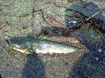 そして6時半、参加者の皆さんは思い思いの場所へ散っていきましや。スタート時の状況として、上流である朝鮮川は数日前の雨の影響でニゴリ気味。一方下流において、新川はニゴリの影響はありませんでしたが、高浜川だけは水田からのニゴリが水門から入ってきていました。そのため最近好調の見合橋周辺に選手は集中。このポイントは本湖の中でも地形的に一番くびれている点と、ボトムには広範囲にゴロタ石がある点でバスがつきやすいことから、好ポイントとして有名です。