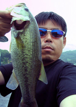 とは言ってもチビくんはすでにショップに向かってますので、時間もあまり取れません。なので、あと数キャストと思ったそのキャストに“コツ”と特有のバイト。いいサイズでしたよ〜。40cm♪ ランディングにはかなり苦労しましたが何とかキャッチして気分はサイコー!! なんせ野池で40cmは結構貴重ですからね。釣りして良かったです。