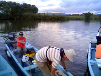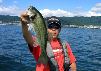 レンタルボートはランカーズ赤野井さん。和船(なかなか乗り心地は良かったです)を借りて手早く3人で準備を済ませて(3人だとホントスピーディ)いざ出撃。まずは赤野井付近でマキマキしました。するとバスベイトやhiroさん愛用のマキマキワームで数本ゲット。サイズもボチボチ良くて、気持ちの良いスタートとなりました。くろますはバイトだけでしたが(ToT)