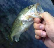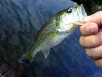 このあとも豆バスが連発し、だんだん飽きてきたので、少しだけ風が出てきたのを見計らって沖目に向けてモリスペをキャスト。池全体をくまなくキャストしたが反応がなかったため、今度はダウンショットで、ボトムに変化がある部分を丹念に探っていくと、コツッと小さなアタリ。こういったアタリはボチボチ良いサイズであることが多く、案の定この池では合格点とも言える30くらいのバスをキャッチ。このあともしばらくは駆け上がりの途中でバイトが連発しました。